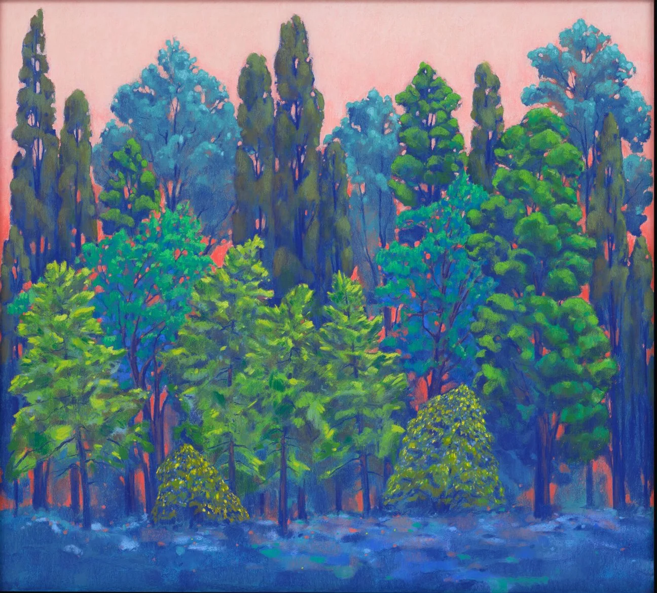 Party will also display a series of pastel works focused on the depiction of trees, a subject that has been a recurring motif throughout the artist’s practice. The transition from the portraits to the treescapes invites the viewer to reflect on continuity and change, anchoring the symbolic weight of the earlier works within a broader meditation on natural cycles and temporal rhythm.
