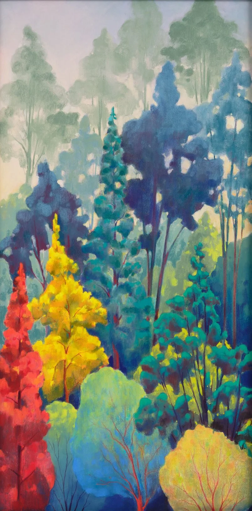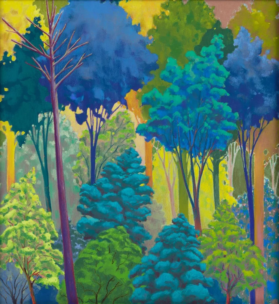 Trees have long served as powerful symbols across cultures, representing both life and permanence, as well as the visible passage of time. Their cyclical transformation through the seasons offers a natural metaphor for change, mortality and renewal. Each pastel depicts a different condition of a treescape—some are lush, green and vibrant, evoking the fullness of spring or summer, while others portray bare, leafless trees that suggest the starkness of winter. In these latter works, the exposed branches resemble skeletal forms, subtly echoing the structure of bones and evoking a quiet reflection on dormancy and fragility.