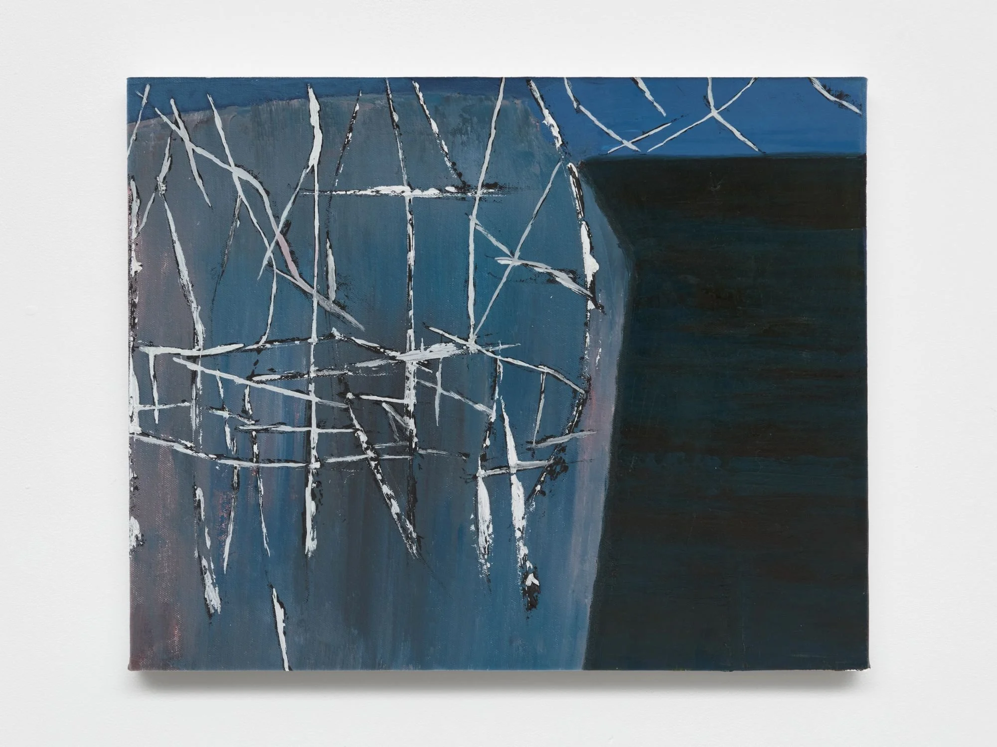 In terms of the landscape, Hahm is painting through nodes demonstrated by Expressionists like Emil Nolde and Max Beckmann, whose emotionally driven brushstrokes often err on the violent. The bold lines that characterize Beckmann’s visual language are particularly useful in Hahm’s lexicon as the latter artist engages the angular as abstracting utility. This tactic is newer for the painter, who has largely abided by a more logical approach to the medium. When appraising these recent works, one should observe that Hahm’s self imposed rules are becoming more flexible. He has begun hinting at figures and observing the value of both repetition and linearity. Here, geometric systems are instilled with a subtle human presence, though his paintings hover indefinitely, never landing on stable ground.