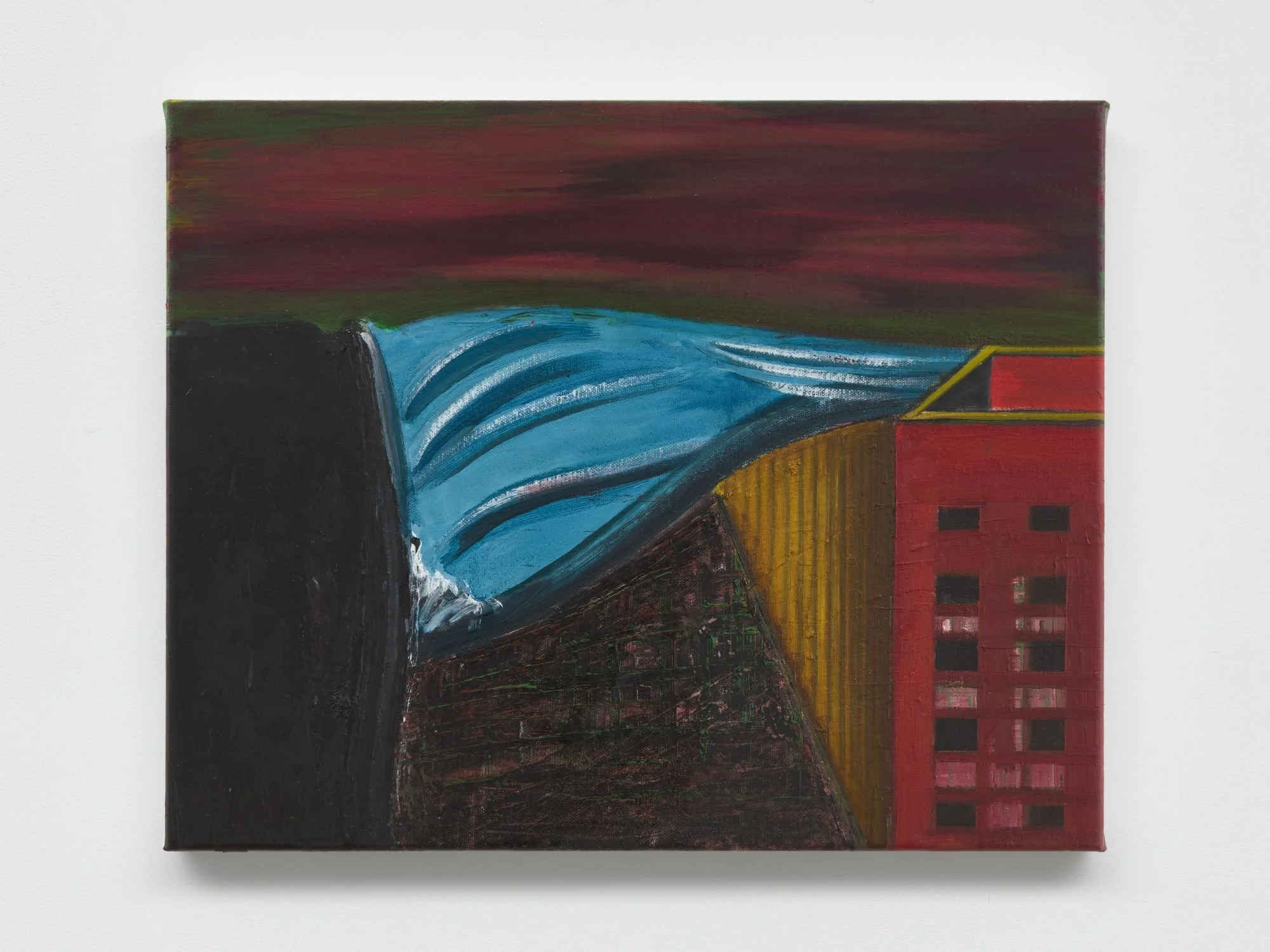 The resulting compositions are perspectivally diverse, as Yang explores how objects might look back at us. She also pursues chromatic and textural resonances in order to stir up pronounced visceral responses to her work. As such, collaged fabrics and old paintings appear across Yang’s canvases. The artist finds new “homes” for her own disused garments and abandoned images, architecting the materials into the canvas . She stages collaborations between drawing and painting, too, weighing certain illustrative structures against oils and acrylics. Regardless of clear figuration, Yang approaches her paintings from an angle of emotional abstraction; her whims and feelings are constantly funneled into the compositions. She speaks of the process as wrought with its own struggles and anxieties. The painter wages psychological warfare within the studio, which manifests itself as tangled imaginal fields and bold chromatic interplay.